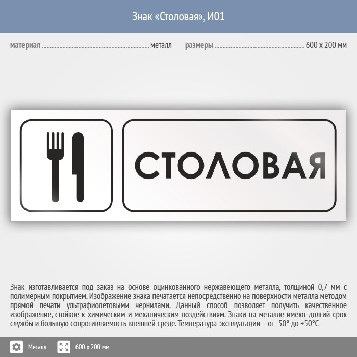 Знак «Столовая», И01 (металл, 600х200 мм) в Рыбинске купить