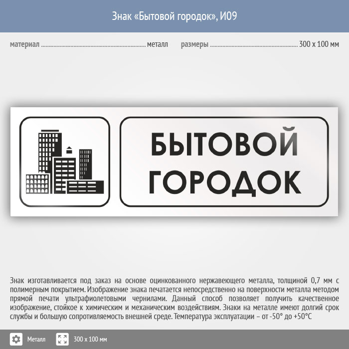 Знак «Бытовой городок», И09 (металл, 300х100 мм) в Рыбинске купить