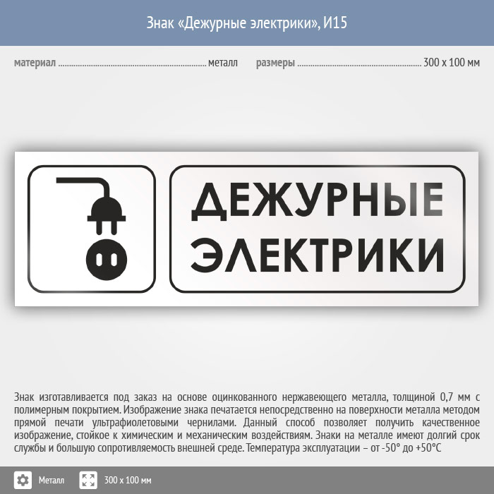 Знак «Дежурные электрики», И15 (металл, 300х100 мм) в Рыбинске купить