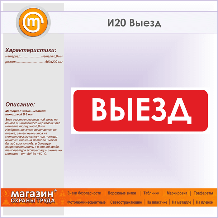 Знак «Выезд», И20 (металл, 600х200 мм) в Рыбинске купить