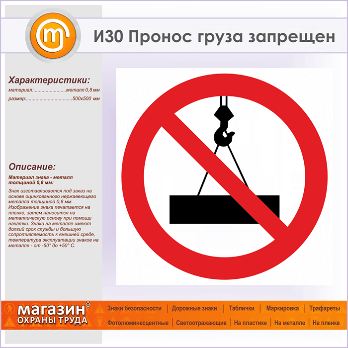 Знак «Пронос груза запрещен», И30 (металл, 500х500 мм) в Рыбинске купить