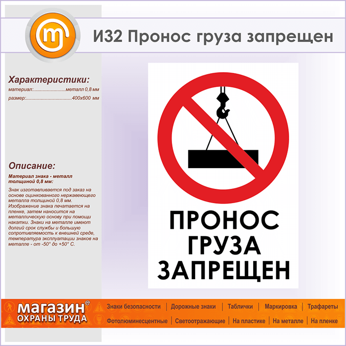 Знак «Пронос груза запрещен», И32 (металл, 400х600 мм) в Рыбинске купить