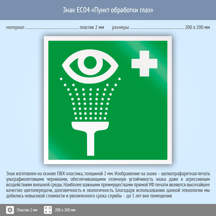 Знак EC04 «Пункт обработки глаз» (пластик, 200х200 мм) в Рыбинске купить